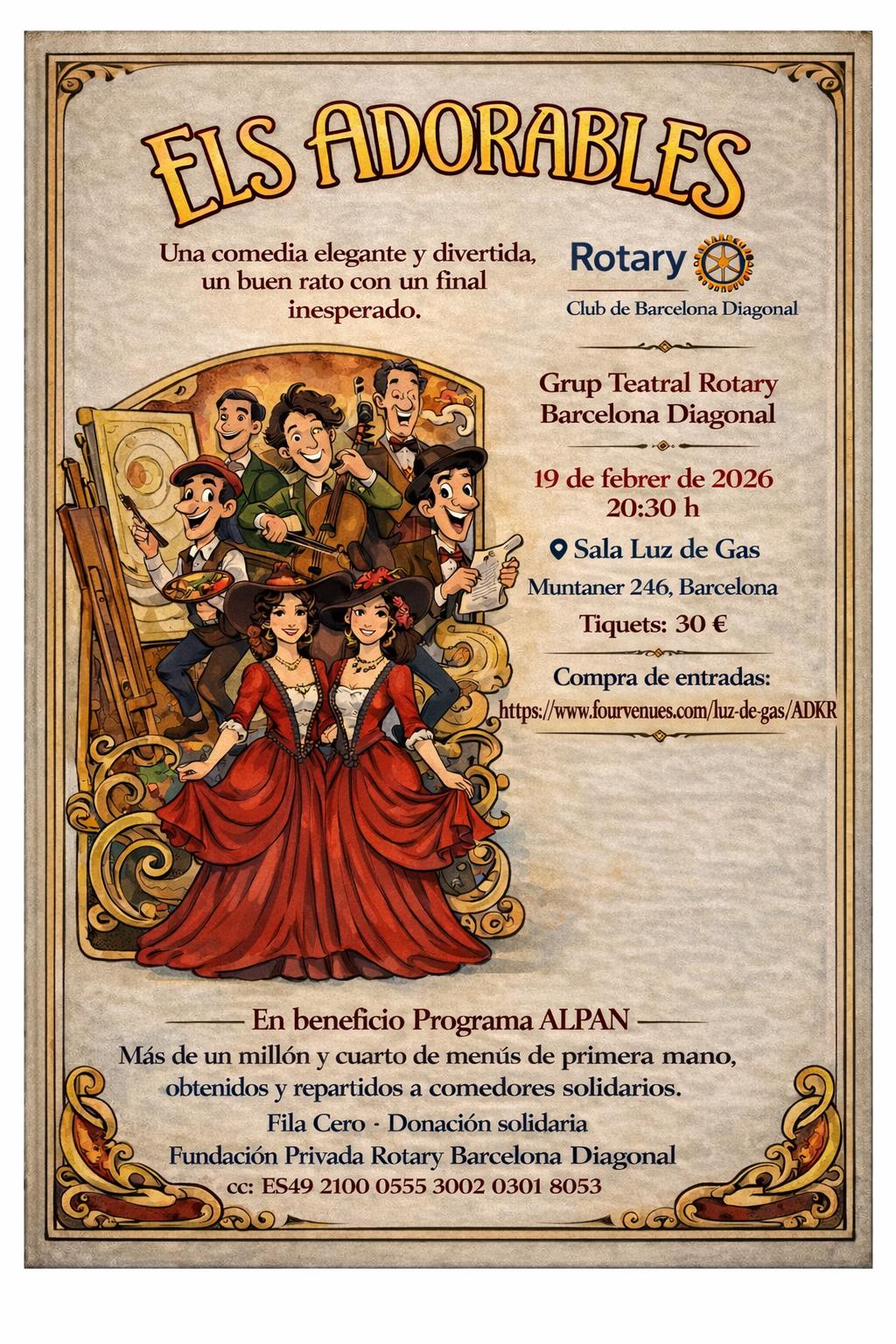 La recaudación total, de esta divertida función representada por el Grup Teatral de Rotary Barcelona Diagonal va destinada íntegramente a esta generosa obra social, ALPAN. (La obra se representa en catalán).